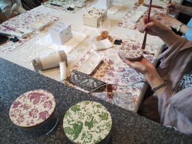 入れる箱を作りたいと思ったことから貼り箱の存在を知り、その後デコパージュを始める。